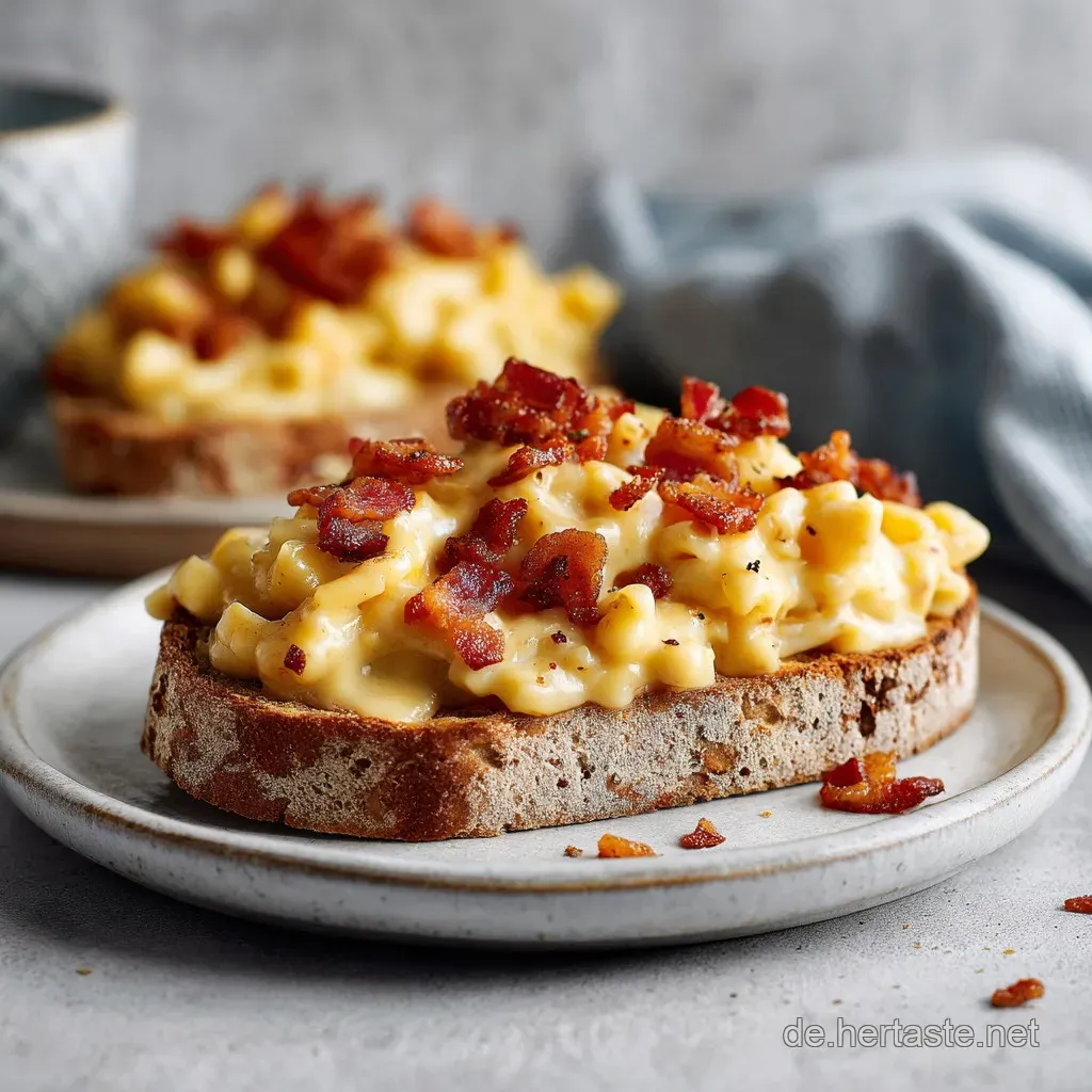- Geschmack/Textur: Samtige Creme trifft auf knusprigen Speck und schmelzenden Käse