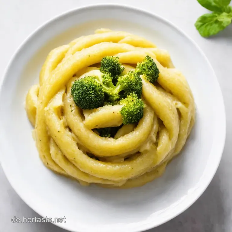 - Schichten: Nudeln, Brokkoli, Käsesoße in eine Auflaufform schichten.