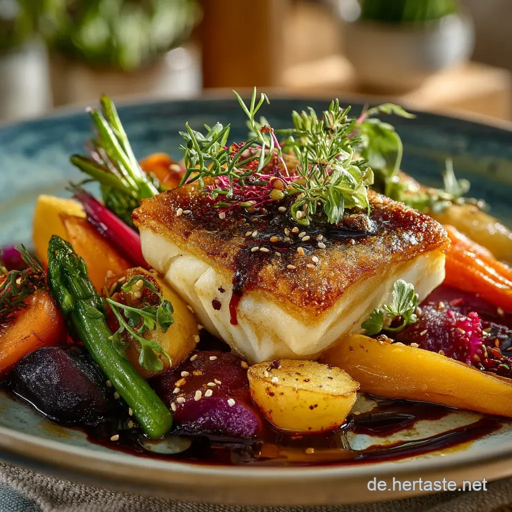 Wir nehmen den festen, weißen Kabeljau und betten ihn in ein Bett aus Gemüse, das durch mediterrane Würze zum Leben erweckt wird. Es ist diese Kombination, die unser Gericht von einem einfachen Fischgericht zu einem echten Erlebnis macht.