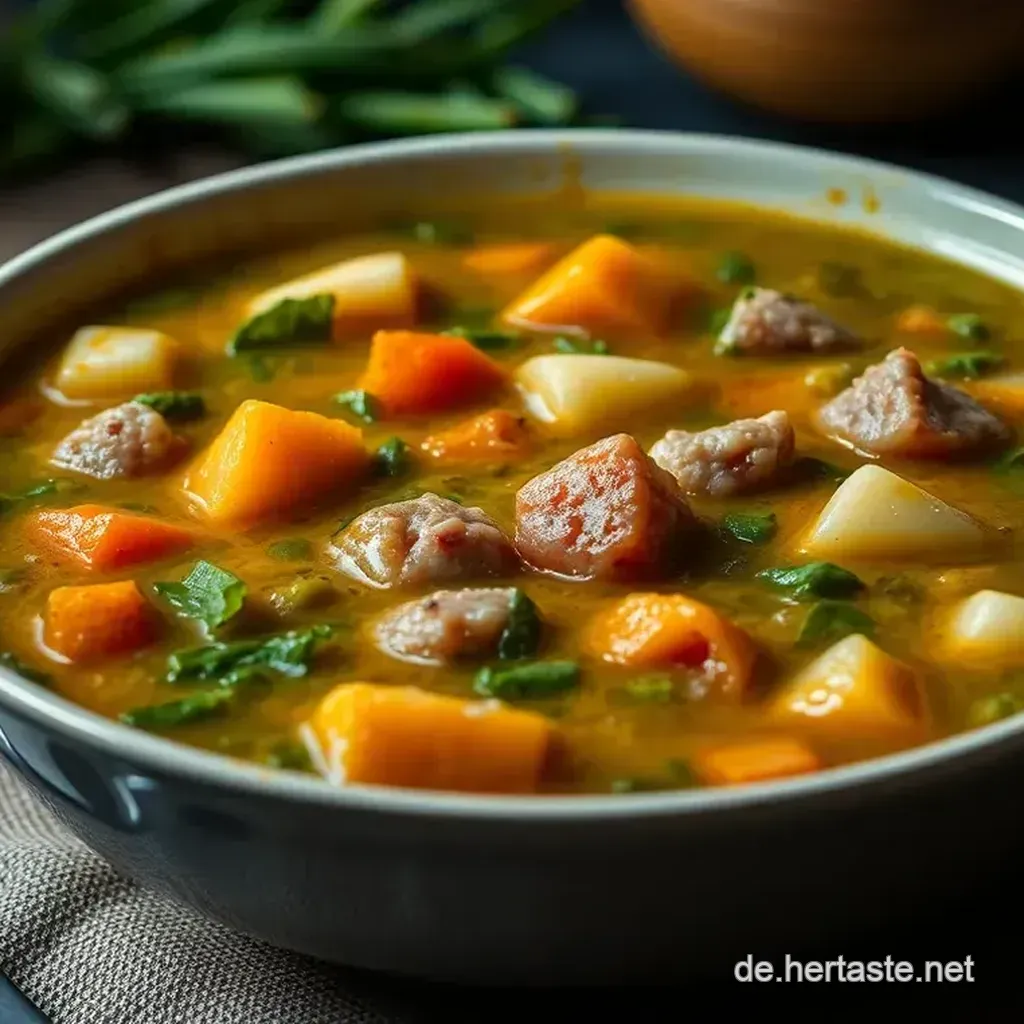 Wenn es kalt draußen ist und der wind bläst, ist das ein perfektes rezept für eine deftige suppe , die wärmt.