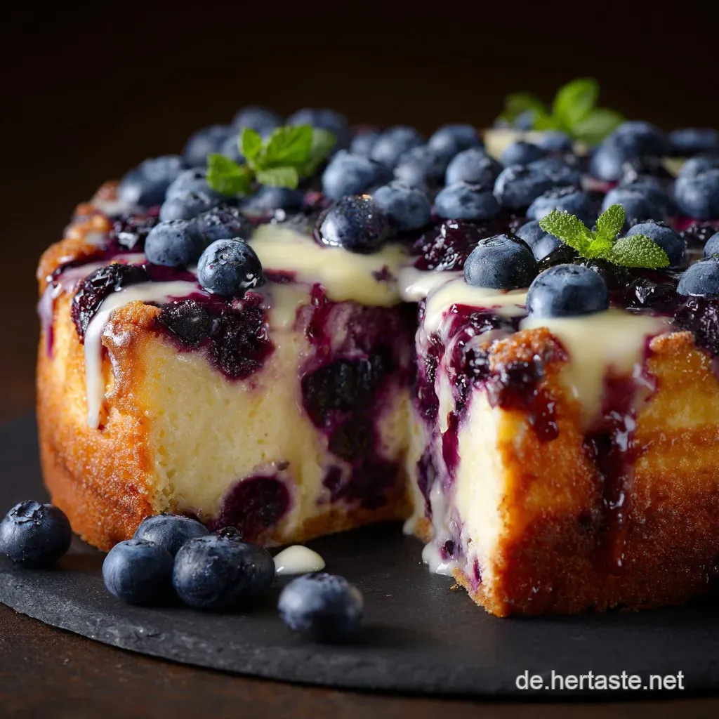 Diese Mischung sorgt dafür, dass die Heidelbeeren nicht wegfließen, sondern in einer leichten, erfrischenden Creme gebettet sind. Es ist eine perfekte Balance aus Süße, Säure und dem buttrigen Crunch des Bodens.