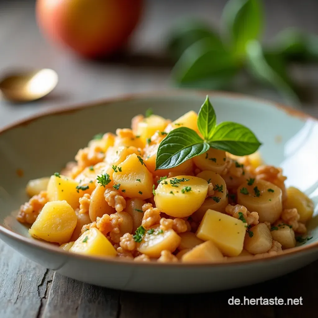 Na klar, mein Lieber, ein bisschen Vorbereitung schadet nie! Du kannst die Kartoffeln und Äpfel schon schnippeln und das Dressing anrühren. Mische den Salat aber erst kurz vor dem Servieren mit dem Dressing, sonst wird er labberig, wie ein Berliner ohne Pfannkuchen Füllung.