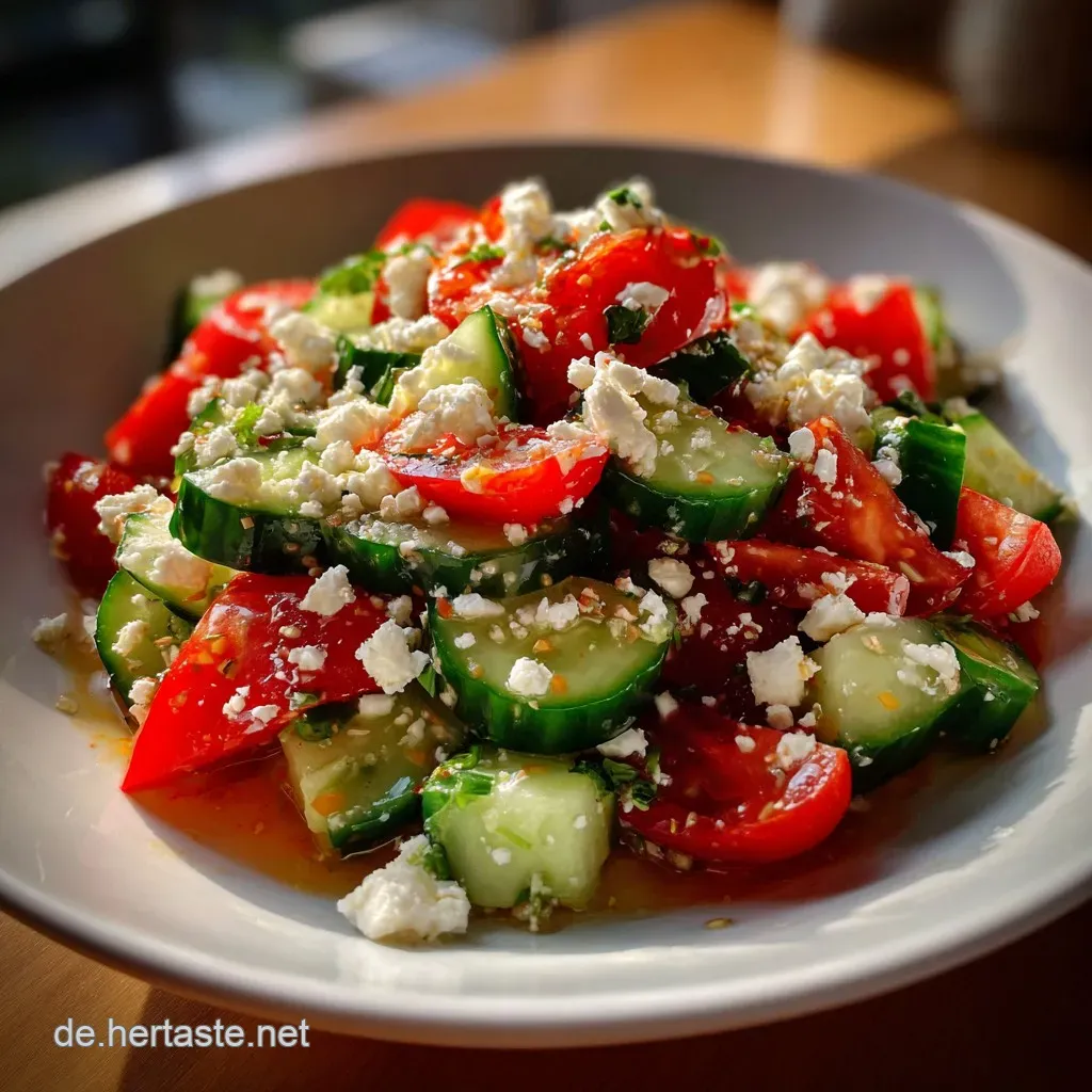 Fertig ist dein einfacher Gurken Tomaten Feta Salat .