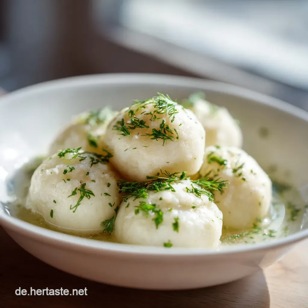 Die rohen Klöße sofort nach dem Formen ins Wasser geben. Wenn Sie eine große Menge zubereiten, halten Sie die fertigen, ungekochten Klöße auf einer leicht bemehlten Arbeitsfläche oder kühlen Sie sie kurz im Kühlschrank. Dies verzögert das Auseinanderfallen, wenn die Kochzeit nicht sofort verfügbar ist, ein Vorgehen, das auch bei anderen Teigwaren hilft, wie beim Spitzkohl Eintopf Rezept, wo die Ruhezeit wichtig ist.