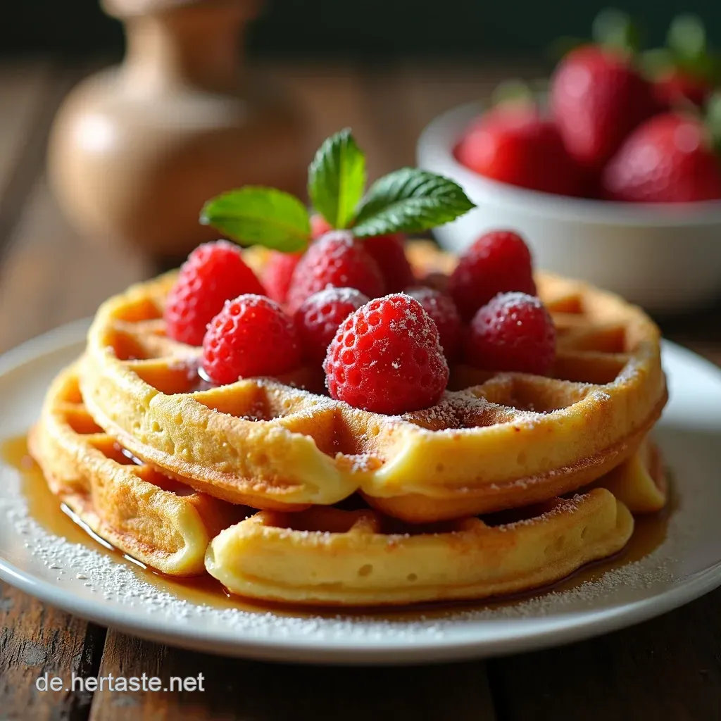 Wie serviert man Waffeln richtig? Denk mal drüber nach! Ich liebe es, meine Waffeln mit Früchten zu verzieren. Frische Erdbeeren, Blaubeeren oder Himbeeren sehen nicht nur super aus, sondern schmecken auch himmlisch! Ein Klecks Sahne oder eine Kugel Eis machen das Ganze perfekt.