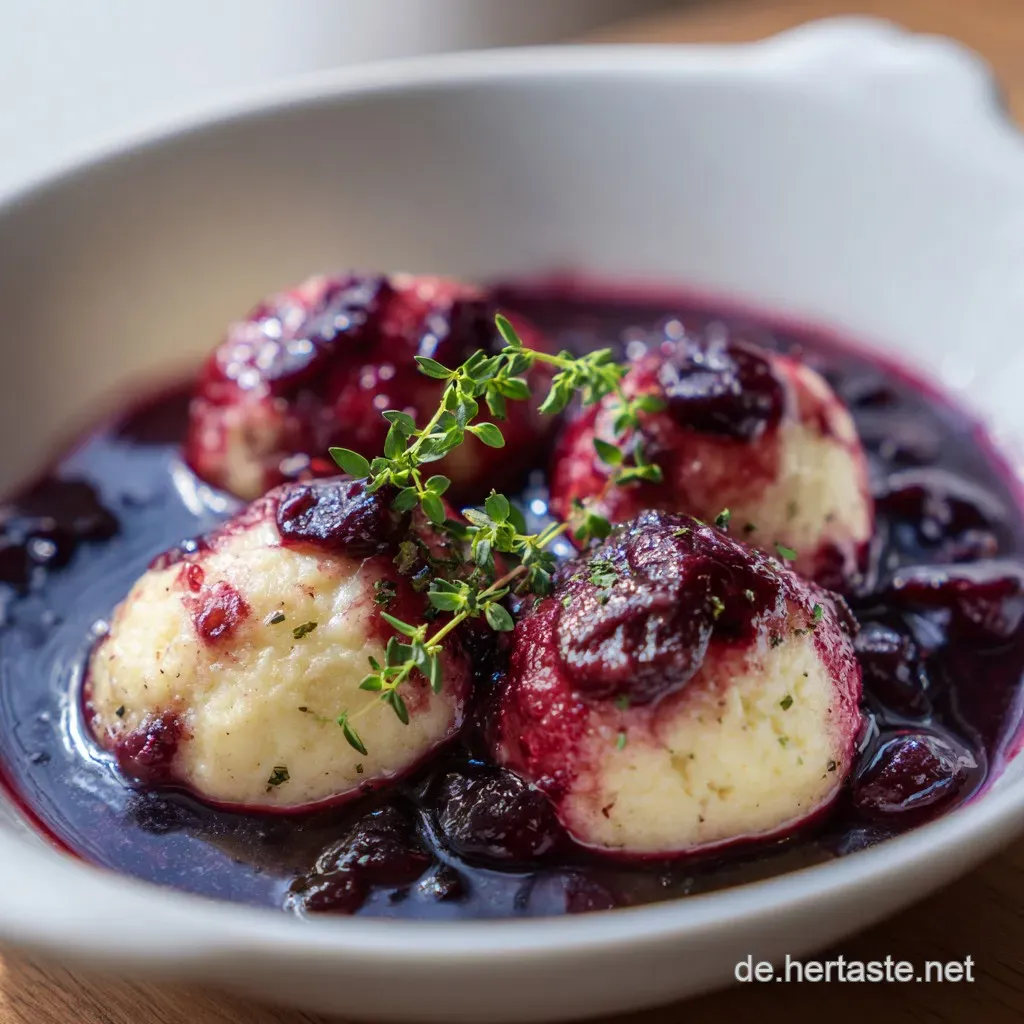 Ich serviere diese Knödel am liebsten mit einer großzügigen Portion Vanillesauce oder einer Kugel hausgemachtem Vanilleeis. Der Kontrast zwischen den heißen, zimtigen Bröseln und der kühlen Sauce ist einfach unvergleichlich. Auch eine fruchtige Sauce aus pürierten Beeren passt wunderbar, wenn man die Säure der Zwetschgen unterstreichen möchte. Genieße sie am besten direkt aus der Pfanne, wenn die Brösel noch warm und knusprig sind. Ein weiteres, wunderbar wärmendes Gericht für kalte Tage sind meine Hähnchenschenkel aus dem Ofen, die perfekt als herzhafter Kontrast für ein Menü dienen können.
