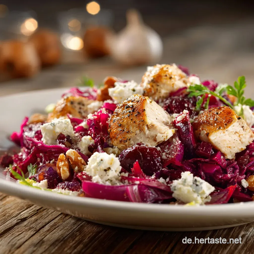 Dieses Gericht ist Liebe auf den ersten Bissen, ehrlich. Stell dir vor: Du beißt in knackigen, leicht gesüßten Rotkohl, der von den Röstaromen des saftigen Hähnchens durchzogen ist, und dann kommt dieser salzige, cremige Feta Kick das ist einfach nur umwerfend.