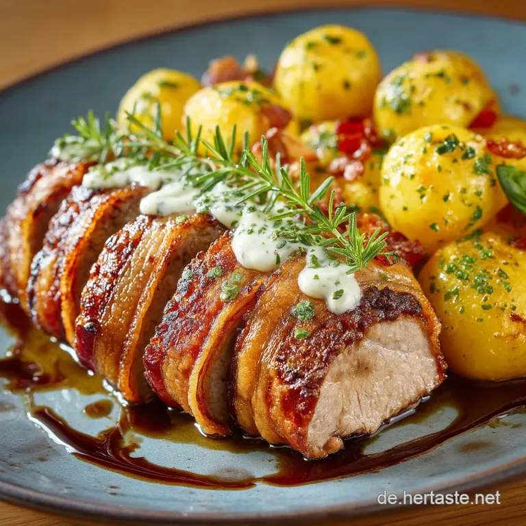 Dieses Gericht vereint die Zartheit des mageren Schweinefilets mit der herzhaften, rauchigen Würze des Specks zu einem unwiderstehlichen Ensemble. Als versierter Koch weiß ich, dass das Geheimnis hierbei nicht in der Komplexität, sondern in der Präzision liegt.