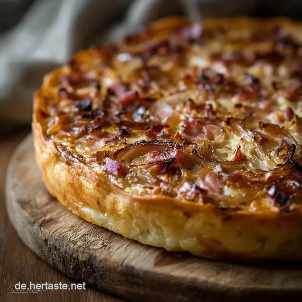 Wenn du einen vegetarischen Zwiebelkuchen backen möchtest, lass ihn einfach weg oder ersetze ihn durch angebratene Räuchertofu Würfel.